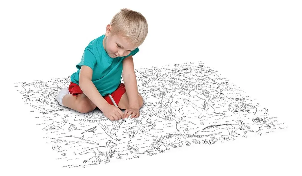 LIVRO BRINQUEDO EM FORMA DE TAPETE PARA COLORIR PEDAGÓGICO – DINOSSAUROS